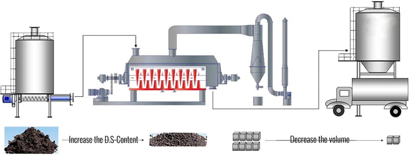 KJG Hollow Paddle Dryer is a sludge drying equipment by heat exchange via steam or hot oil that goes through the hollow paddle and shaft. The final sludge cake moisture content could be down from 60% to 10%.